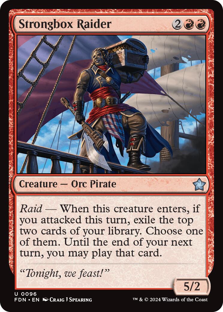 - Rules Text Contains: Raid — When this creature enters, if you attacked this turn, exile the top two cards of your library. Choose one of them. Until the end of your next turn, you may play that card.