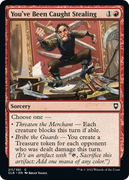 • Bribe the Guards — You create a Treasure token for each opponent who was dealt damage this turn. (It's an artifact with "T, Sacrifice this artifact: Add one mana of any color.")